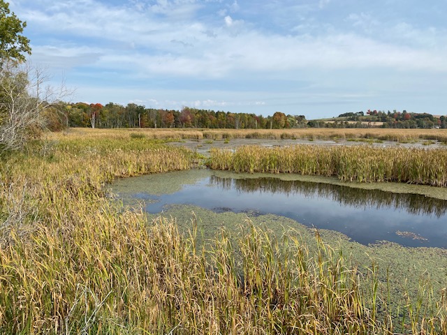 These are guided nature walks, not backcountry scrambles. The terrain at Lone Pine Marsh is relatively flat with established trails through meadow and along the marsh edge. Haddon has some gentle hills and stream-side ravines typical of the Northumberland drumlin landscape. Expect uneven ground and natural trail surfaces. Comfortable hiking shoes or sturdy walking shoes are recommended.